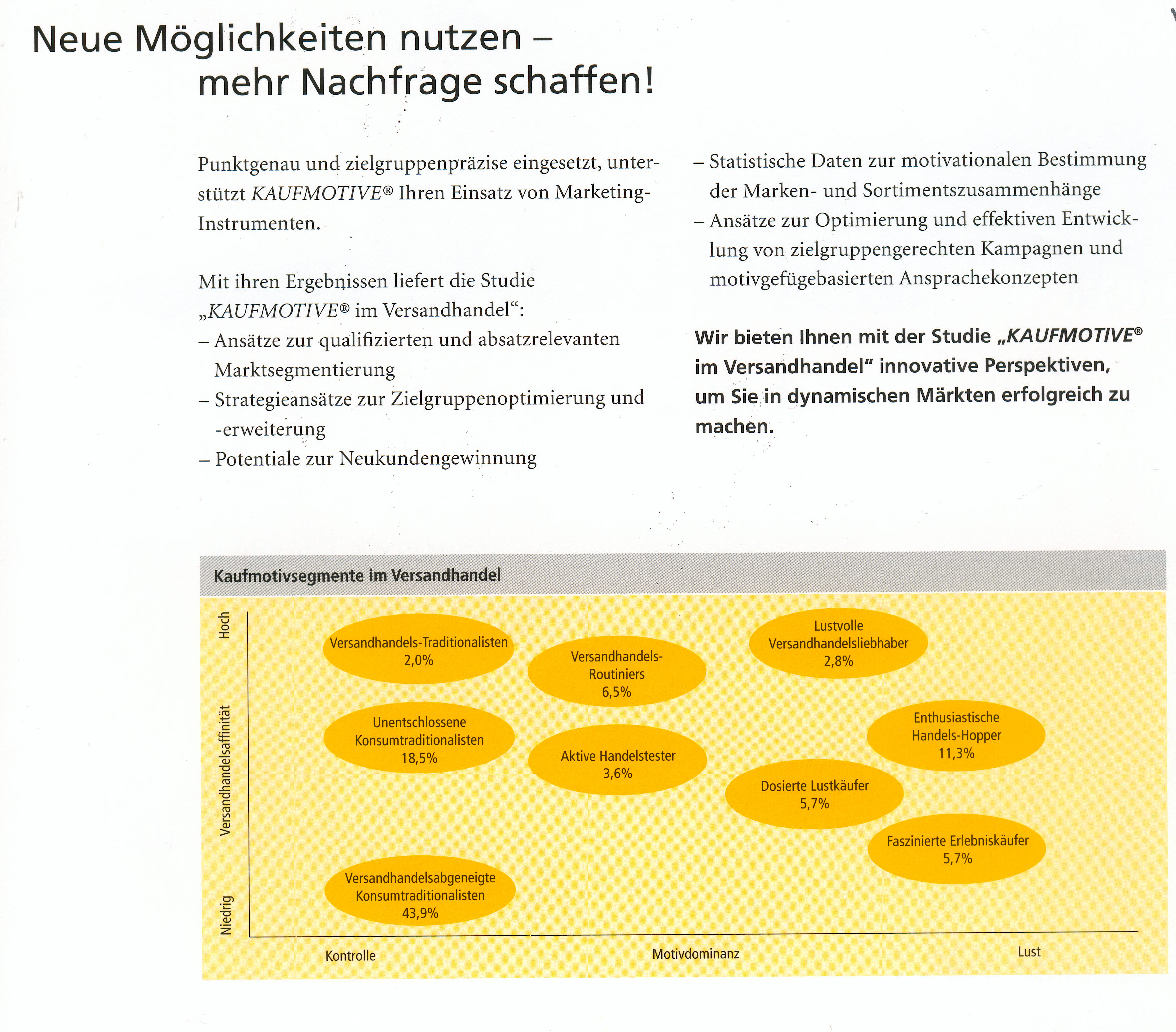 Aber das sich Individuen unterschiedlich verhalten - und damit auch anders kaufen - hat schon Ulrich Beck Mitte der 80er Jahre (Buchtipp: RISIKOGESELLSCHAFT - http://www.amazon.de/Risikogesellschaft-Auf-eine-andere-Moderne/dp/3518113658/sr=1-1/qid=1165411296/ref=sr_1_1/028-5462982-5621310?ie=UTF8&s=books) und die amerikanische Trendforscherin Faith Popcorn in den 90ern festgestellt. http://www.faithpopcorn.com